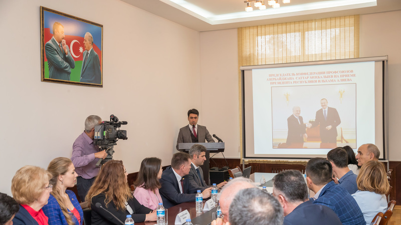 Состоялись рабочие встречи с председателем Профсоюза Османовым Хикмет Салех оглы, первым заместителем председателя Конфедерации профсоюзов Азербайджана Алиевым Ильяс Алхас оглы, сотрудниками аппарата и профсоюзными активистами. В рамках круглого стола стороны обменялись опытом работы. Было отмечено, что профсоюзы в Азербайджане тесно сотрудничают с государственными структурами, систематически проводят анализ экономического и социального положения профессиональных групп работников для представления в государственные, правительственные органы и органы управления предложений. Есть достижения в социально-экономической жизни страны, улучшении материального положения населения. Ведется совместная эффективная работа правительства, работодателей и профсоюзов, в части занятости населения и сокращения безработицы, предотвращению нелегальной занятости в стране, укреплению трудовых и социально-экономических прав работников .