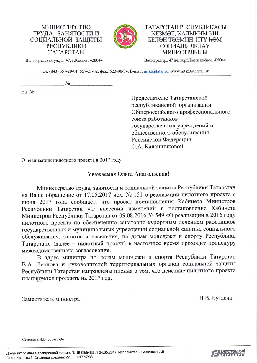 Ответ Министерства труда, занятости и социальной защиты РТ о «пилотном проекте»